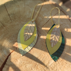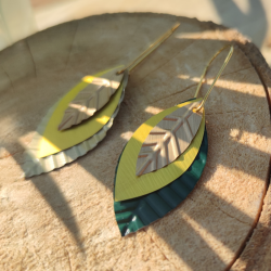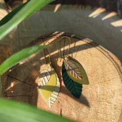 Elles sont modulables : la plus grande feuille comporte 2 couleurs différentes dans 2 tonalités différentes (crème au recto et vert au verso). Vous n'avez qu'à choisir le côté qui vous plaît le plus selon vos envies ou vos tenues. Ainsi, vous avez plusieurs boucles d'oreilles en une seule paire ! A vous de composer !